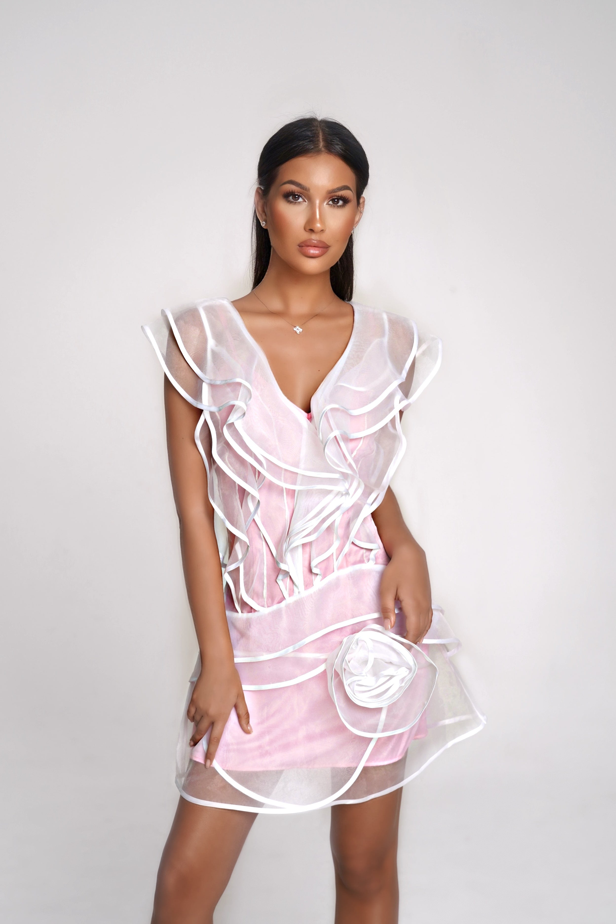 Delicate and effortlessly feminine, the MIA dress is crafted from sheer white organza with a soft pink satin lining that peeks through. Perfect for garden parties, bridal showers, or summer soirées — it's a whisper of elegance in every step.